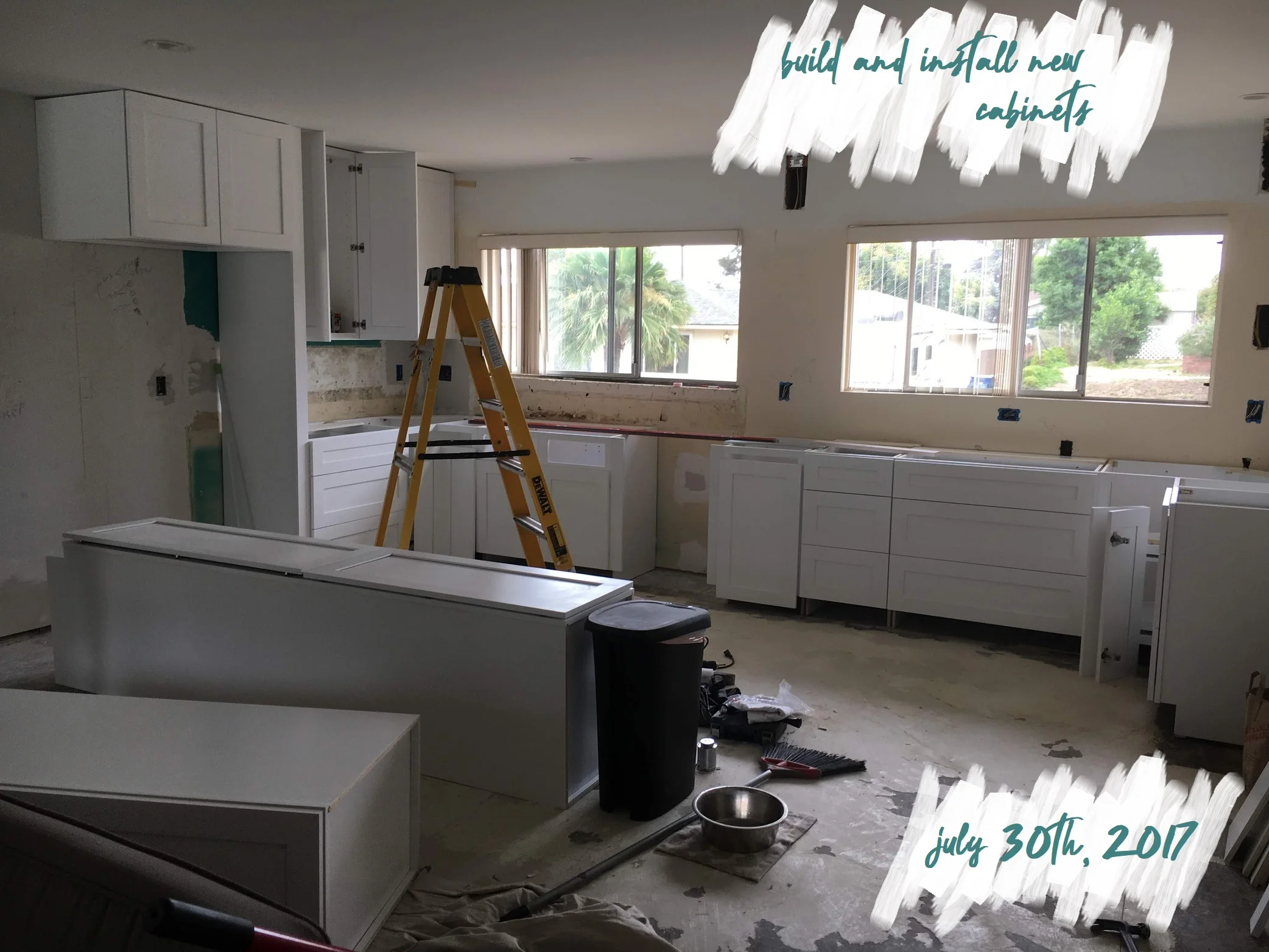 Cole and I decided to do this remodel in steps (a.k.a - as soon as we had enough money for one project, we would tackle it and then save more money to do the next thing on our list.) Call us crazy, but it's just what worked for us. The thought of saving up everything to do all at once seemed a little daunting, so breaking it up in steps was our plan of attack. Don't get me wrong, I would highly, HIGHLY recommend doing it all at once if you can, that way you're not living in a construction zone for months at a time. But, you gotta do what works for you! See below for our progress pics!